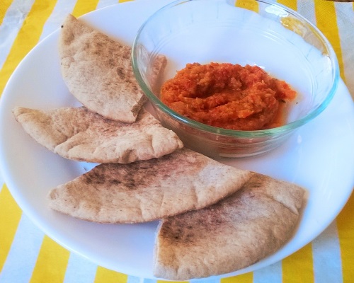 With oven roasted sweet peppers, zucchini and leeks, this recipe makes a sweet and optionally spicy dip for pita or nacho chips, or a flavorful spread for sandwiches, tortilla wraps or quesadillas. Great for a picnic, a quick lunch or an appetizer.